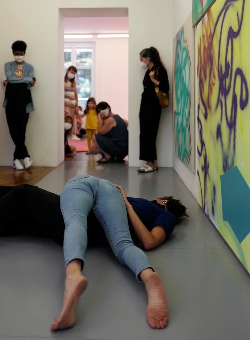 Conversation piece est un espace chorégraphique performatif proposé par Anne Sylvie Henchoz & Lauriane Houbey ouvert à touxtes, qui se construit au cours d’une pratique collective et visible par le public de l’exposition.