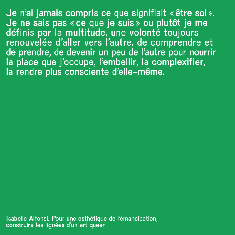 “Pensée queer” is the second theoretical axis nourishing the CHO projects. It focuses on the notions of inclusivity and departitioning, which are discussed, questioned, and clarified in order to find strategies for practical implementation. It is about deconstructing norms and oppressions on bodies with the aid of critical methodologies, such as queer thinking and the approach of disability studies, among others. The reflection is supported by concerned and expert people.